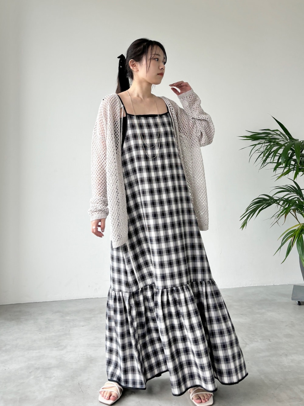 チェックのキャミワンピにメッシュカーデでGWに着ていきたいレジャースタイル🫧
