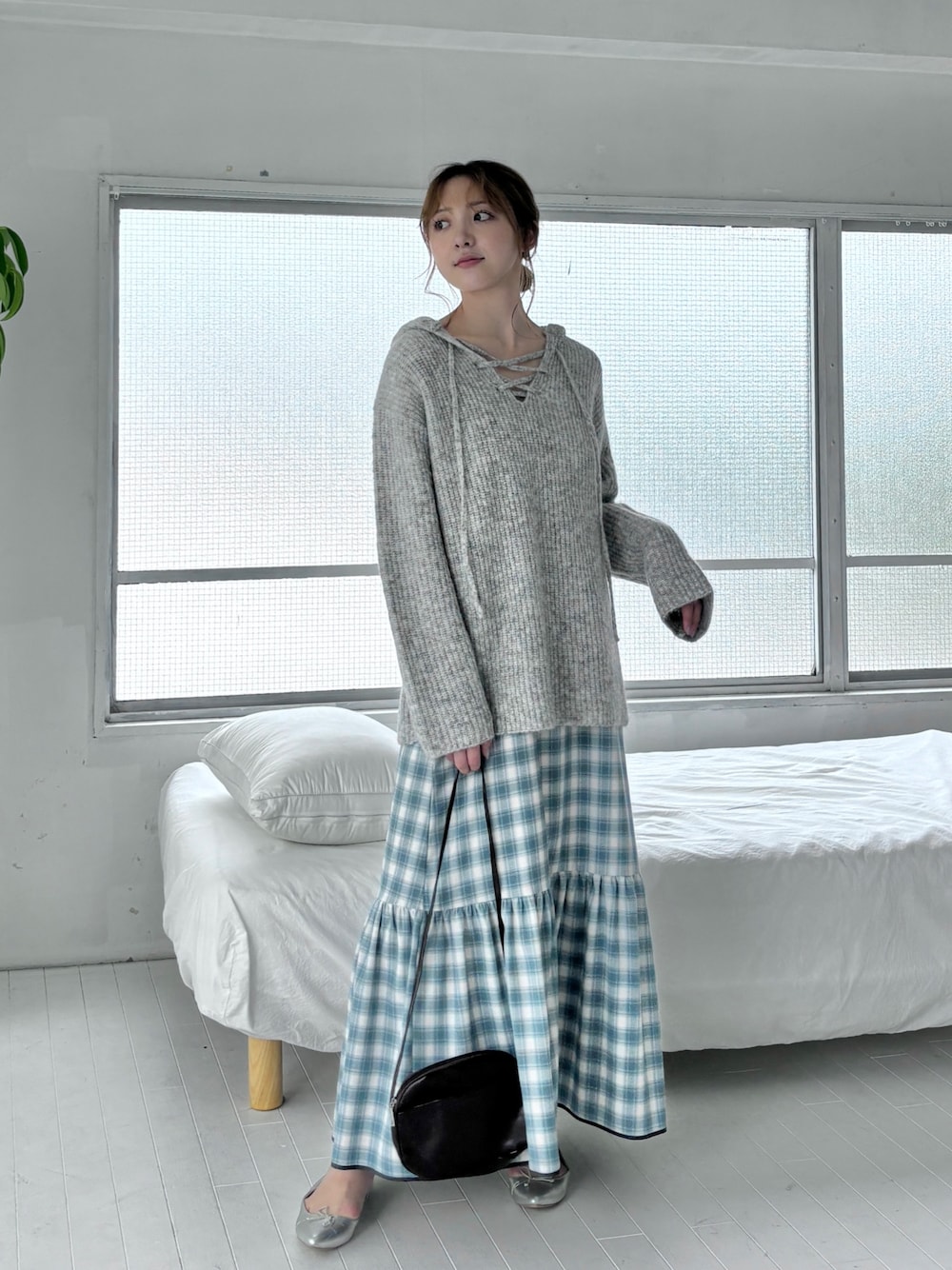 キャミワンピにニットフーディーを合わせてゆるコーデ🫧
