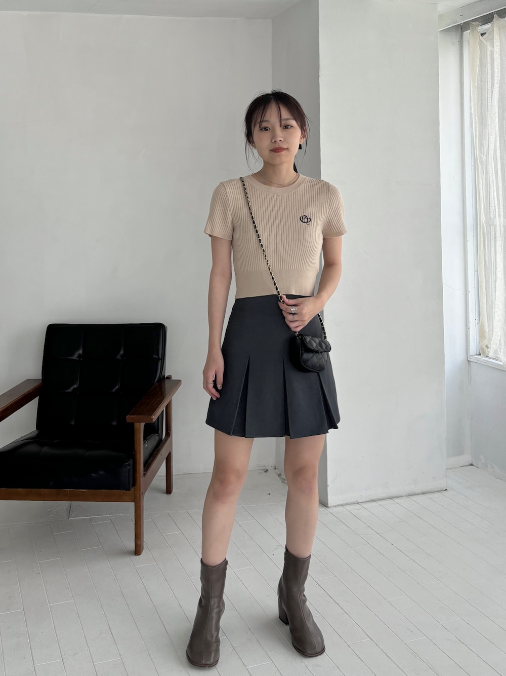 リブニットにプリーツのシンプルコーデ🤍 ちょっと秋を意識した淡色でまとめました🍂