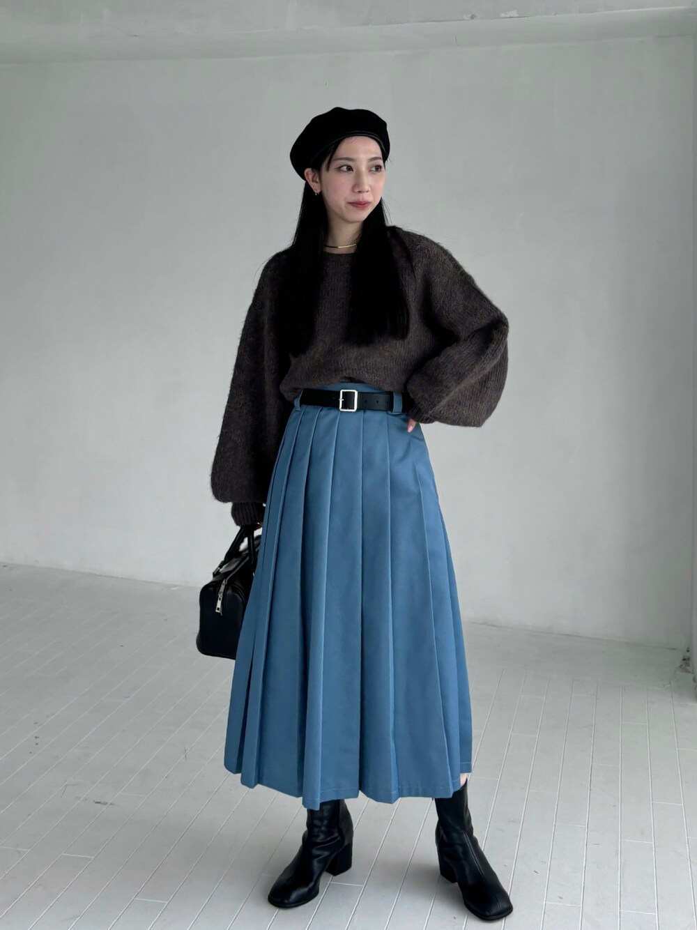 ミディ丈のプリーツスカートと小物でレトロ感のある外国風コーデ🧸👢