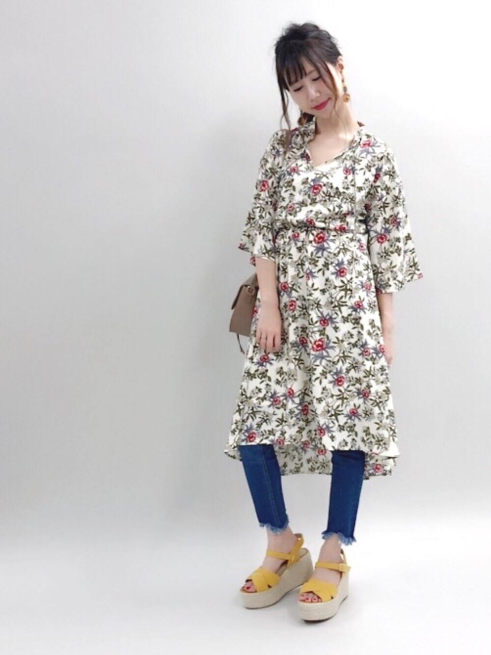 珍しく花柄ワンピ♡ ゆるっとしたシルエットが お気に入りです👩❤️👩