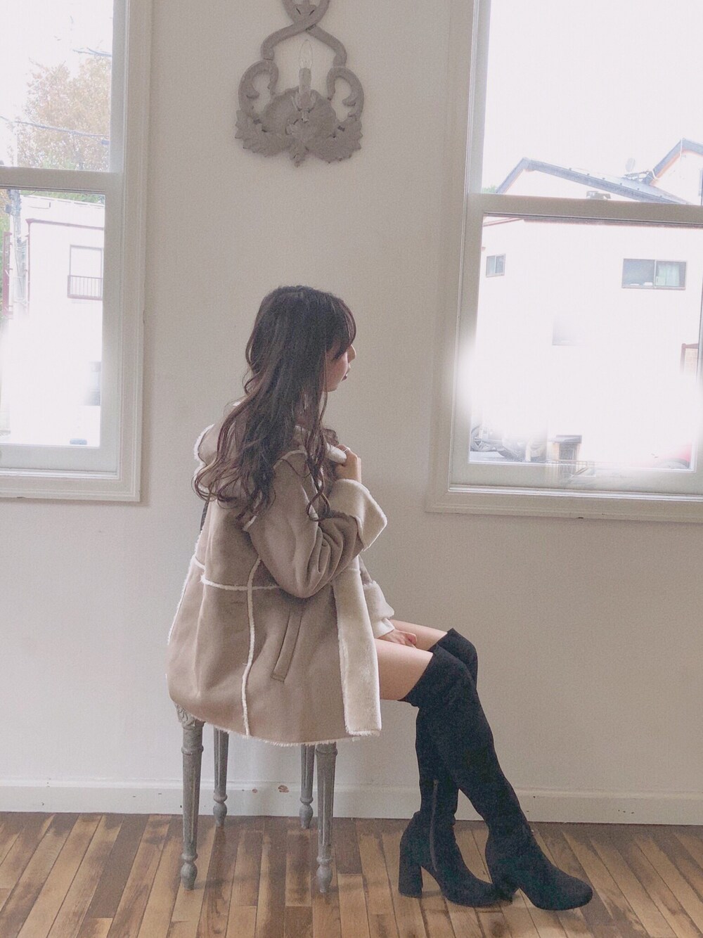 ムートンは 女の子らしく 着れるアウターで おすすめ❤︎ ミニボトム合わせが可愛いです🥰