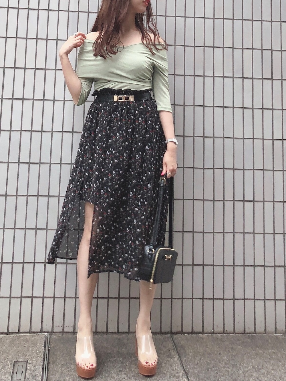AYA0119のTシャツ/カットソー「クロスオフショルダーTシャツ」を使ったコーディネート
