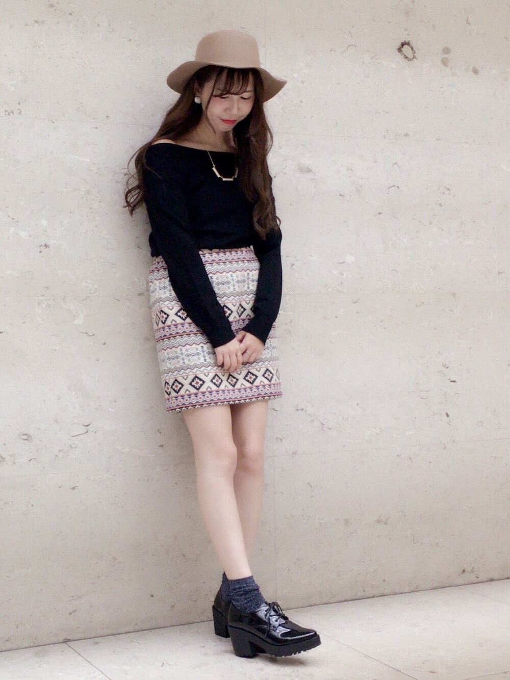 AYA0119のハット「フェルトカンカン帽」を使ったコーディネート