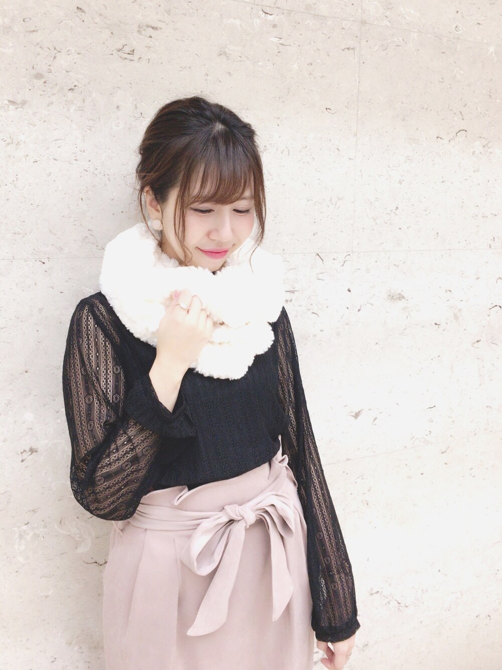 AYA0119のストール/ショール「【予約】もこもこフェイクファーツイストスヌード」を使ったコーディネート
