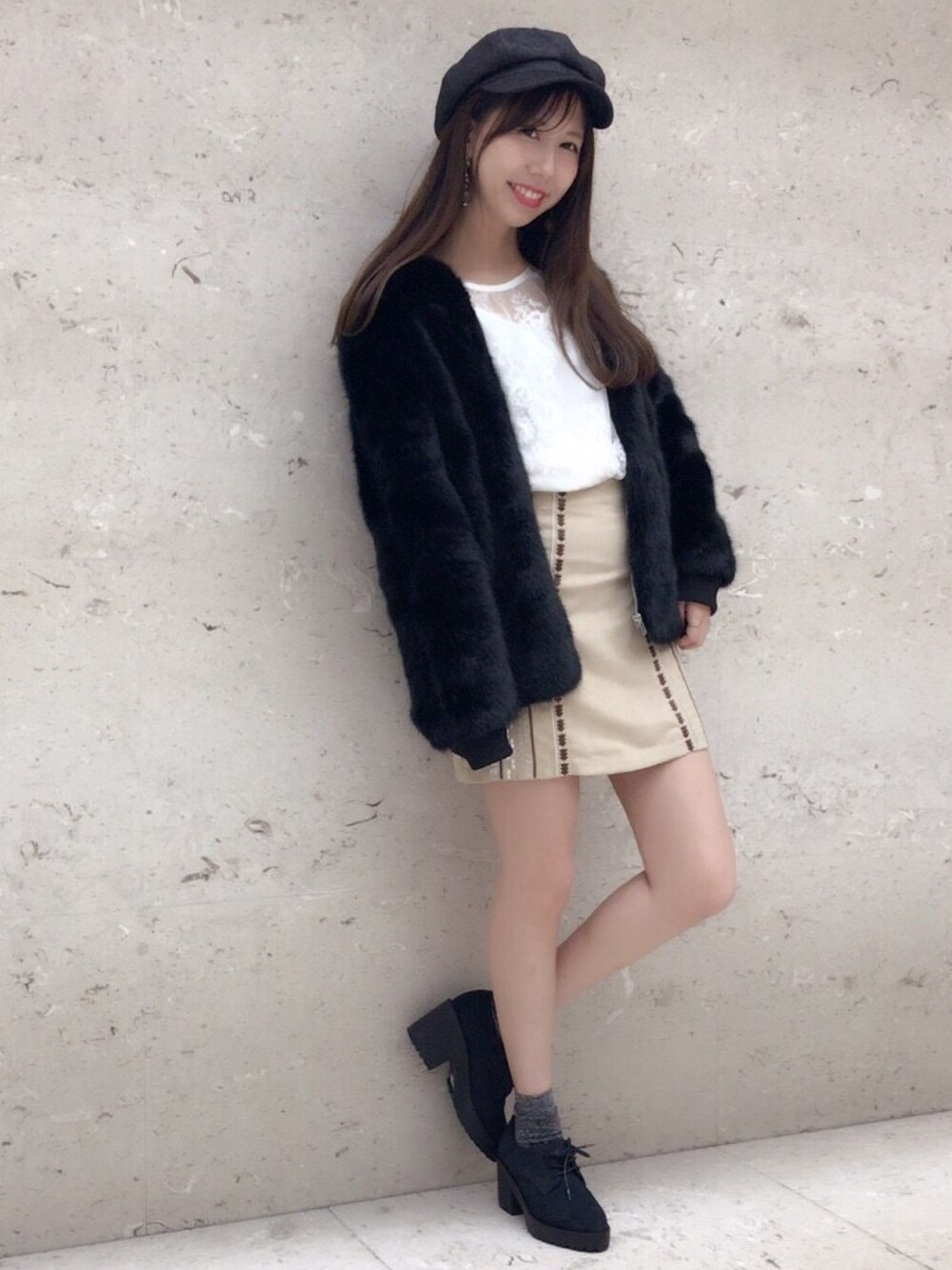 AYA0119のノーカラージャケット「ノーカラーフェイクファーコート」を使ったコーディネート