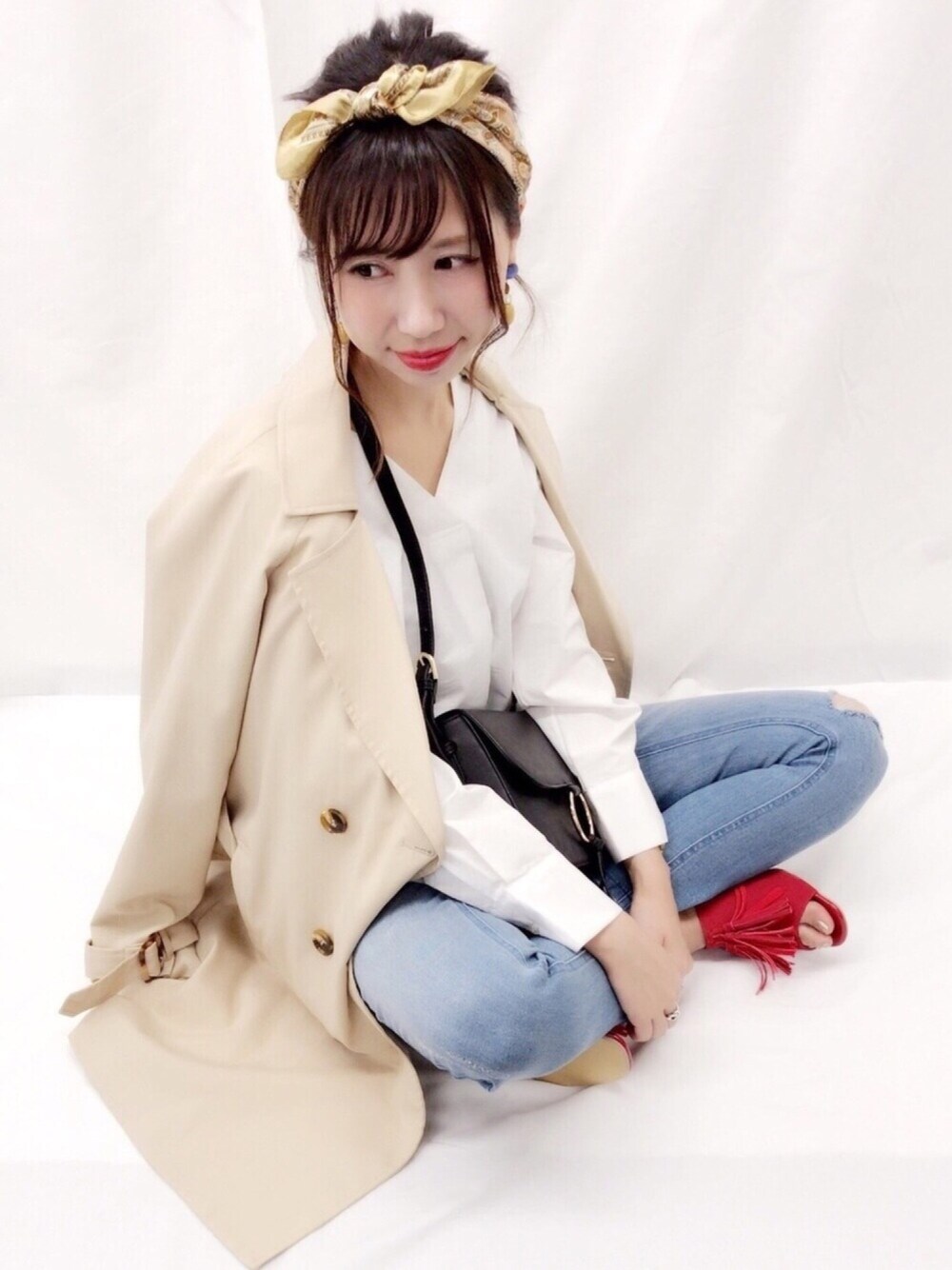 トレンチコートを使った フレンチカジュアルスタイル…♡ リングバッグはZOZO限定で 予約受付中です😋💓