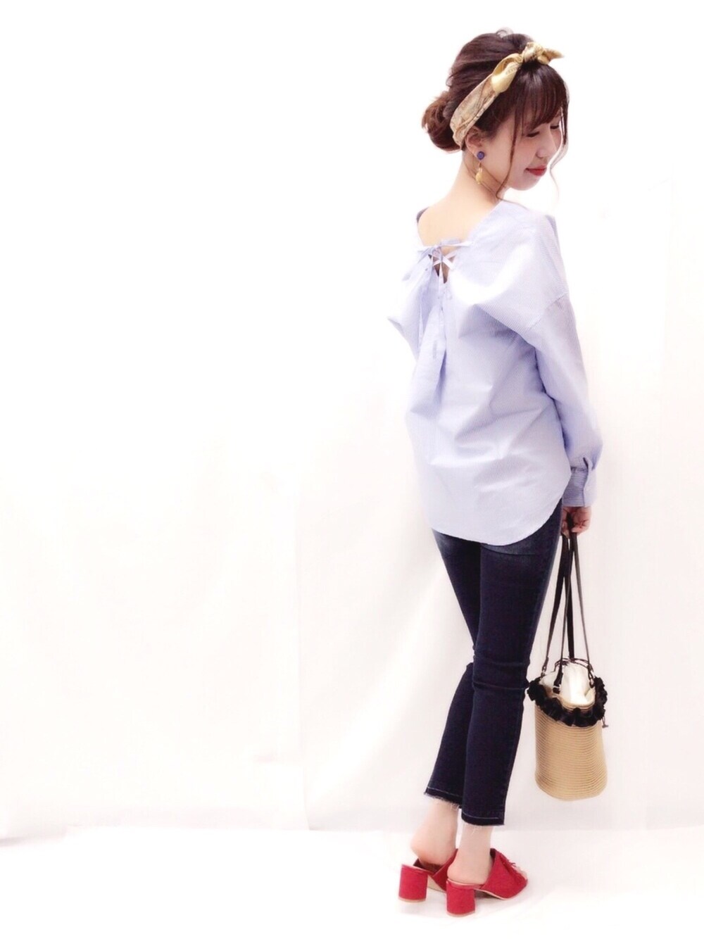 後ろのレースアップがポイントのブラウス👩❤️👩 デニム合わせで 大人カジュアル😊 スカート合わせもオススメです👠