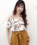 花柄ブラウスをyellow合わせで トレンドコーデに👶🌸 yellowを合わせるだけでどんなコーデも 今っぽく着れますよね👩❤️👩