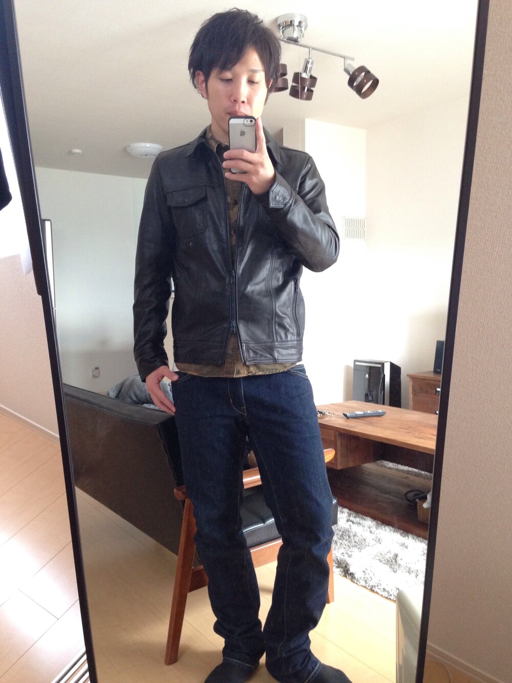 kousuke のライダースジャケット「シープレザーウルフパックジャケット」を使ったコーディネート