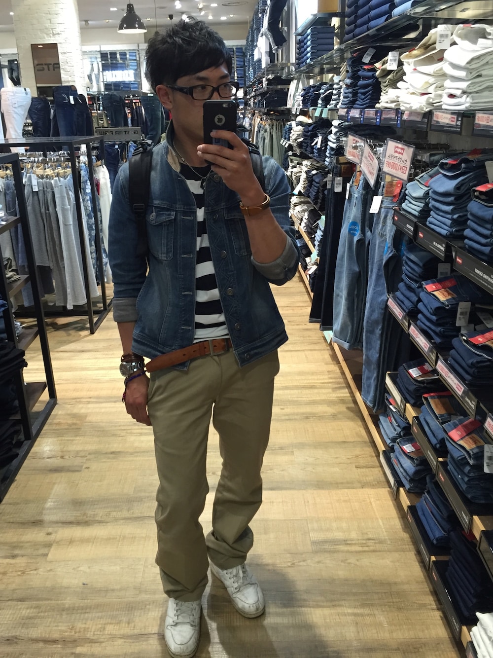 こんばんは〜 撮りだめコーデです! Gジャンにボーダーそしてチノパン♫ 鉄板コーデです(*˘︶˘*) では② いつも訪問・コメント・ハート・セーブ・フォローありがとうございます♫