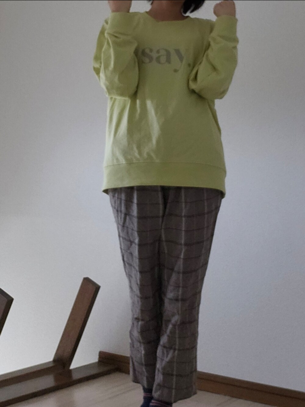 フレッシュな色をブラウンチェックと合わせた雨の日コーデ♪