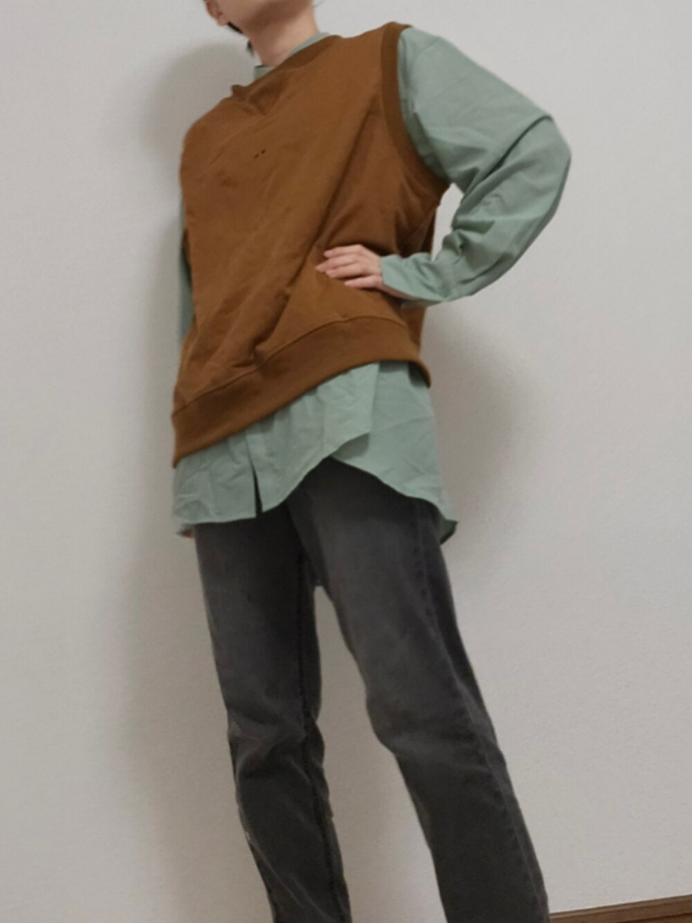 ベストはあった方がいいかどうか…でもレイヤードがしたかったのです。ベストなしバージョンは2枚目