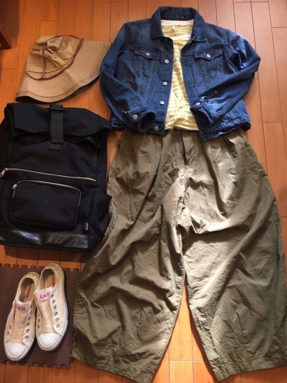 こんばんは🌙 今日のチャリ通🚲コーデ。 春🍃🌸🐝って感じで。 雨やったけど、、、。 見てくださってありがとうございました🍀✨