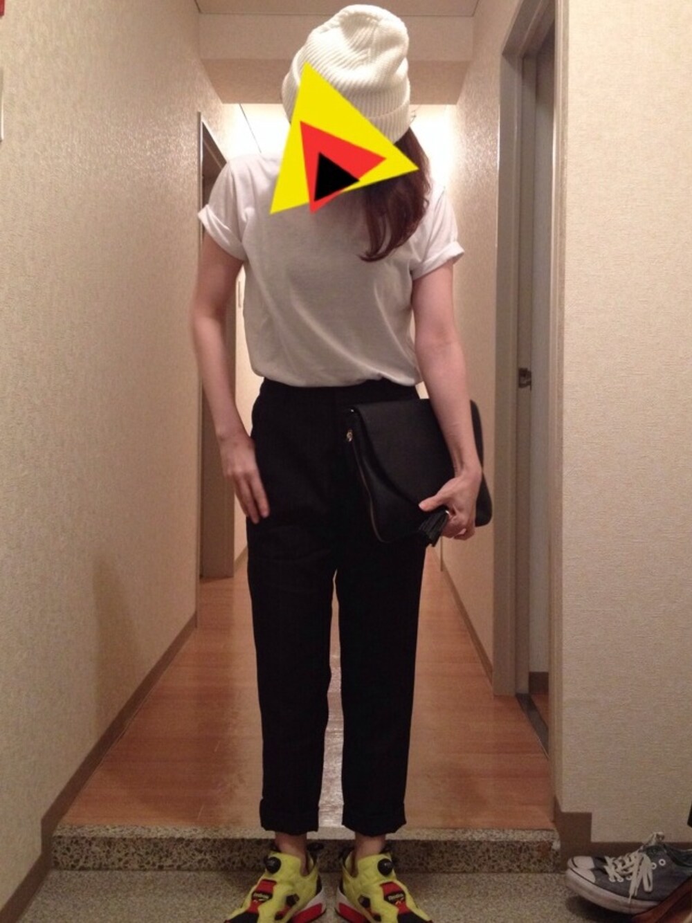 うーん、写真で撮るとわかりずらいなぁー。 一応パンツはピンストライプ。 これ、GUなんだけど本当いい!! GUさまさまだなぁー最近☺︎ そしてポンプが履きやすくてやめられなーい。