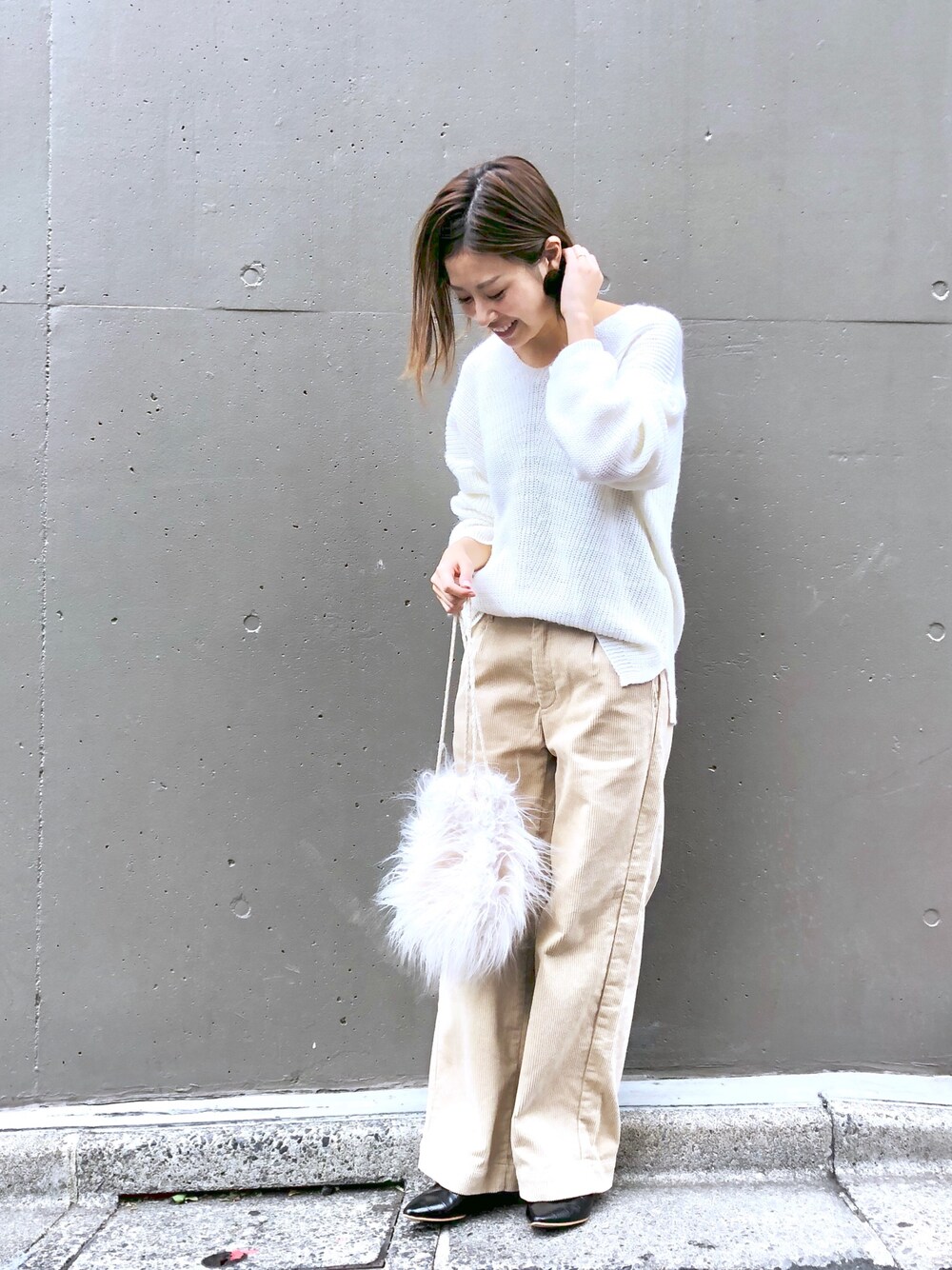 arisa_TYPY本部staffのニット/セーター「アルパカ混BIG抜き襟ニット」を使ったコーディネート