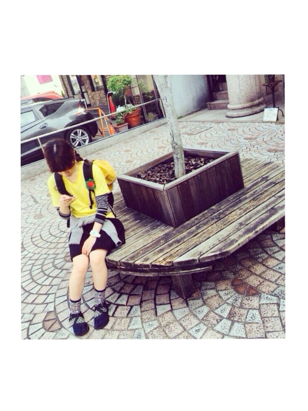 お友達と 初 自由が丘 ◎◎ ちょっと ひとやすみ ♫。 スカート >>> UNIQLO Tシャツ >>> BEAMS BOY