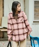 ari(nissen本店)のシャツ/ブラウス「大きいサイズ 吸湿発熱あたたかゆるシルエットバンドカラーネルシャツ」を使ったコーディネート