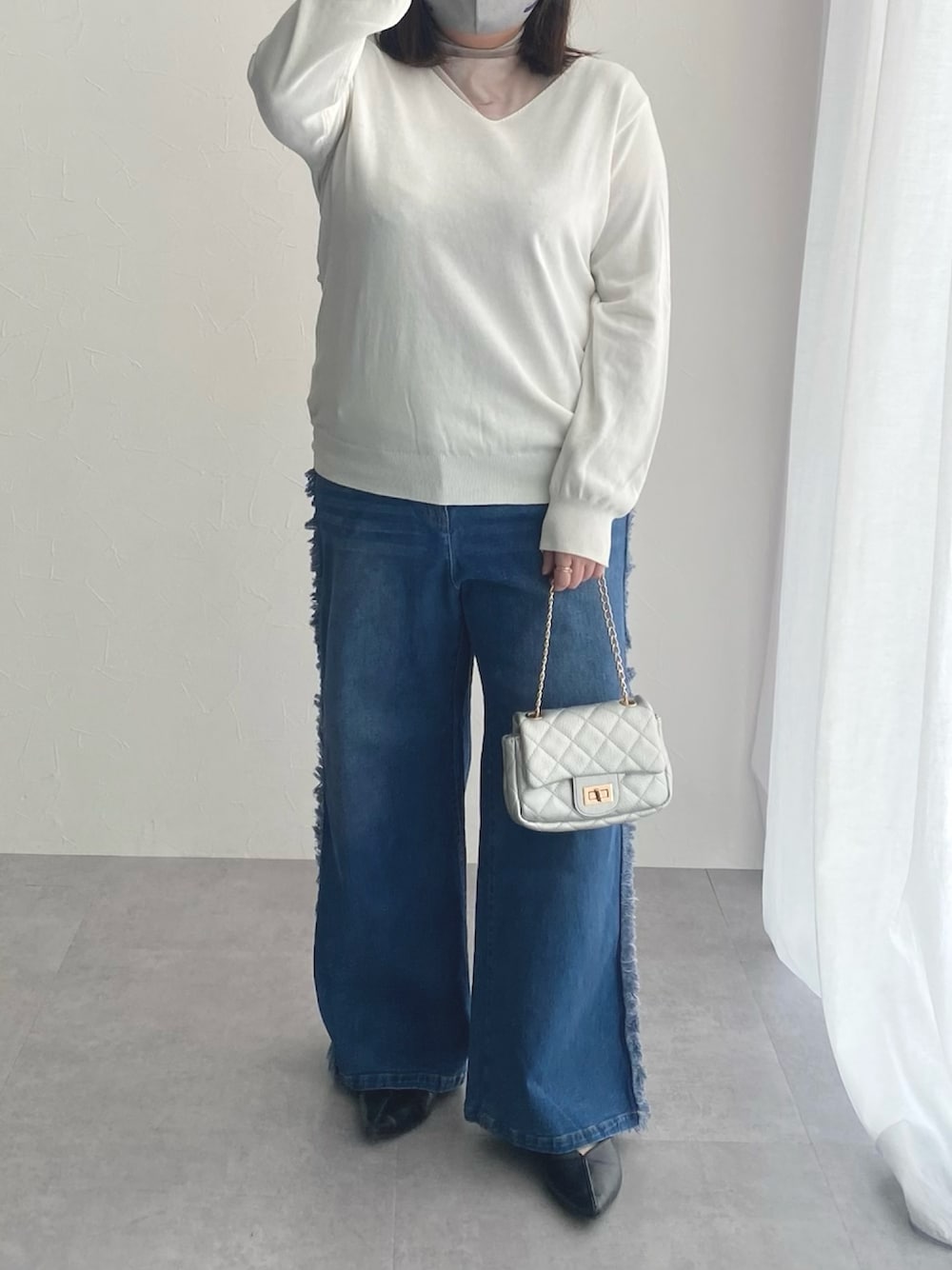 ari(nissen本店)のパンツ「<大きいサイズ> サイドフリンジストレッチデニムパンツ」を使ったコーディネート