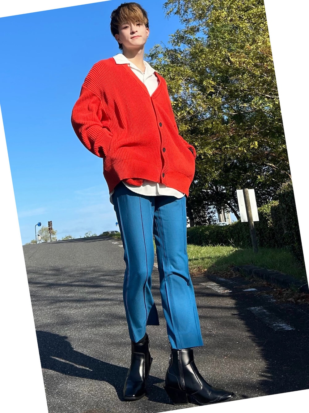 フランス🇫🇷国旗イメージコーデです‼️ 初めてカラースキニーに挑戦してみました✨ トップスにボリューム感を出して綺麗なYラインになるようにしました! ヒールブーツにすることで、スラッと足長効果が出てスタイルよく見えるのでオススメです。 スキニーはトレンドとは違うアイテムですが、綺麗なシルエットが出てとても映えるので、是非チェックしてみてください✨ これからも投稿頑張りますのでフォローしてくれたら嬉しいです☺️