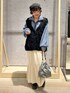 【キレイめカジュアルコーデ】 ◎配色リブWZIPカーデ →羽織にも1枚着にもなるとっても優秀な人気アイテム💙 上からベストを羽織ってもゴワゴワしないサラッと着れる生地感です✨️ パッと目を引くブルーカラーおすすめです! ◎裾ボリュームスカート →満たされニットシリーズで、伸びも良くシンプルすぎないデザインで長く履ける1枚! 裾がふわっと広がるので女性らしさもありキレイめコーデ好きにはたまりません🤍 ◎ループBIGベスト →おしりまですっぽりカバーしてくれる丈感で、くるくるループがとてもかわいい! ロンTやニットの上に重ねるだけで、今っぽコーデの完成👏