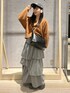 【キレイめカジュアル】 ◎モールVカーデ →もちもち柔らかカーディガン🧡 首元もVネックなのでスッキリ着れます! 丈感は腰周りくらいまであるので、ロングボトムと相性ばっちりです ◎ラメティアードスカート →存在感抜群なラメスカート! ウエストゴムでらくちんです! オレンジ×シルバーはこの時期ピッタリな パッと目を引く秋らしい組み合わせです!🧡🩶