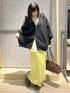 【キレイめカジュアル】 カラースカートを使ったコーデ✨️ 既に大人気なパフエアのBIGパーカーに 女性らしさを出せるレースインナーを🤍 パッと目を引く鮮やかなカラースカートで 春先取りコーデに🐝 スカートは伸びがとってもよくサラサラ生地で履き心地抜群です!!