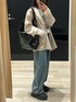 【キレイめカジュアル】 人気の袖レースレイヤードTシャツ! 真っ白なレースが女性らしさを出してくれます! Tシャツ×デニムだとカジュアルになりがちですが ジャケットを羽織るだけで一気にキレイめ見えします✨️ デニムはコクーン型で体型カバーにもってこい! 柔らかい生地でウエストもゴム入っていて楽ちん! 今年大人気な予感…!なデニムです!👖