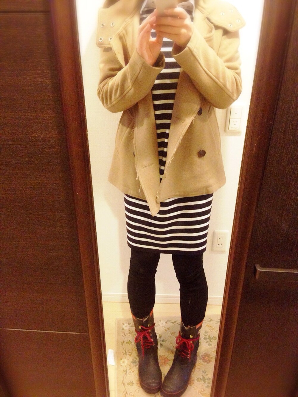 何年着ても形も綺麗で、質感も損なわれない ZUCCaのコート。 雨の日だったので、足元はレインブーツ。 こちらも、もう7年くらい履いてて、 最近穴があいてしまったけど、 これ以上気に入るデザインが探せなくて、 今でも履いてるお気に入り♡