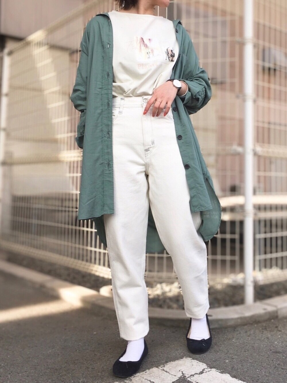 春はグリーンが着たくなる☺️ ホワイトワントーンでグリーン映え🟢