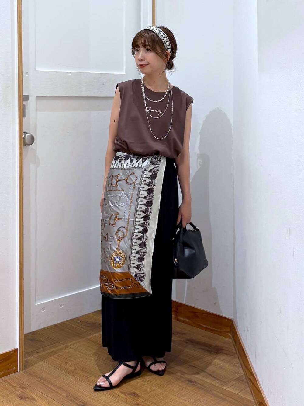 ご覧いただきありがとうございます🤍 大人可愛いコーデ♡ 新作のノースリーブが可愛い!🤎 大人気リッチクリーンシリーズから ノースリーブが登場♩ スカーフを使ってこなれ感あるコーデに🧕♡ 接触冷感なのでとても涼しいです!🍃 このカチューシャほんとに可愛くて、 リアルバイ検討中、、😩🤍笑 少しでも参考になれば嬉しいです、♡ Instagramも更新中🤍 ありちゃんのページはこちら🔗