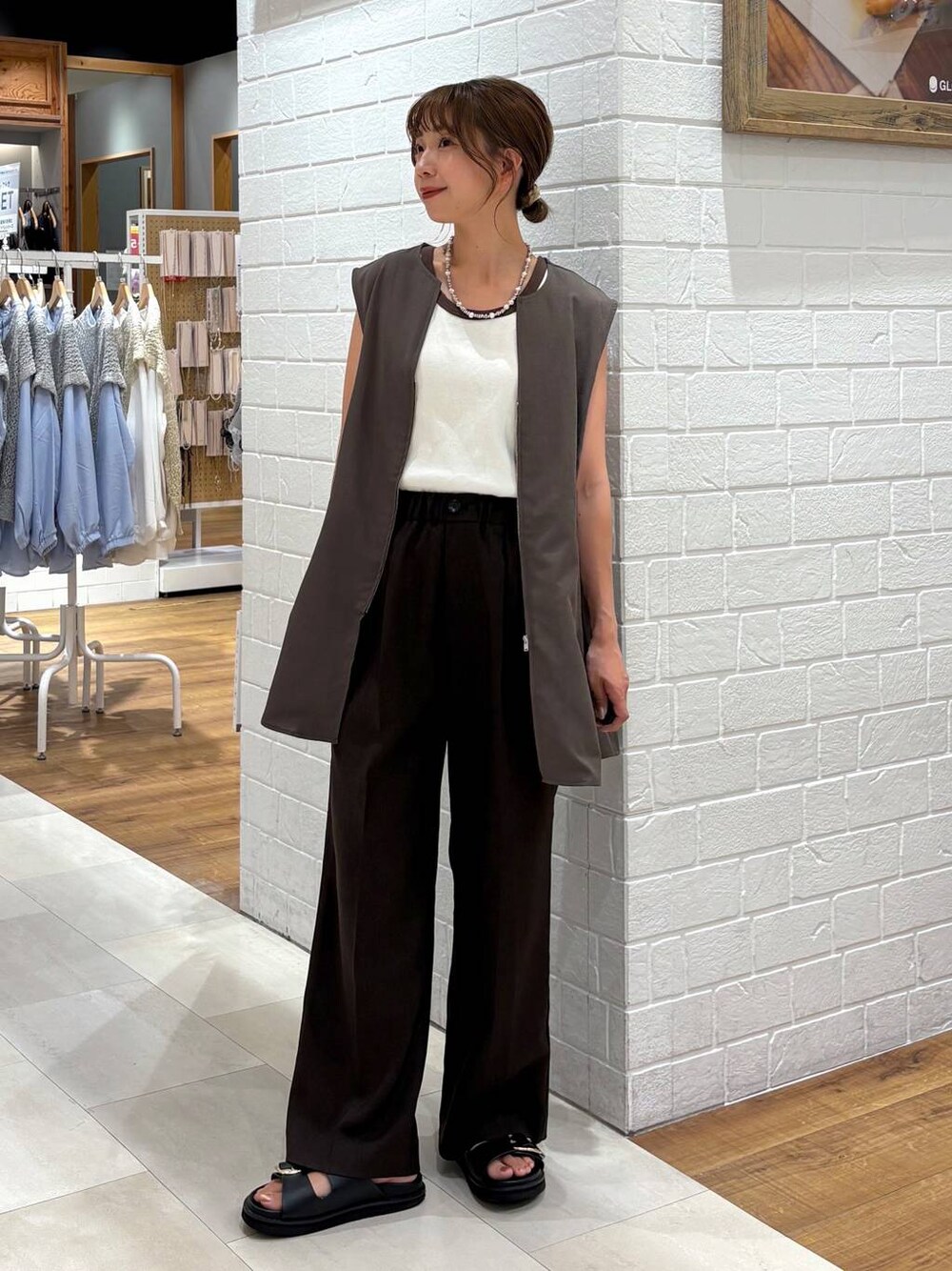 ご覧いただきありがとうございます🤍 リアル出勤コーデ♡ 配色のブラウンが可愛いタンクトップに ベストとボトムスは同系色でセットアップ風🤎 お気に入りのコーデです🫶🏼 少しでも参考になれば嬉しいです、♡ Instagramも更新中🤍 ありちゃんのページはこちら🔗