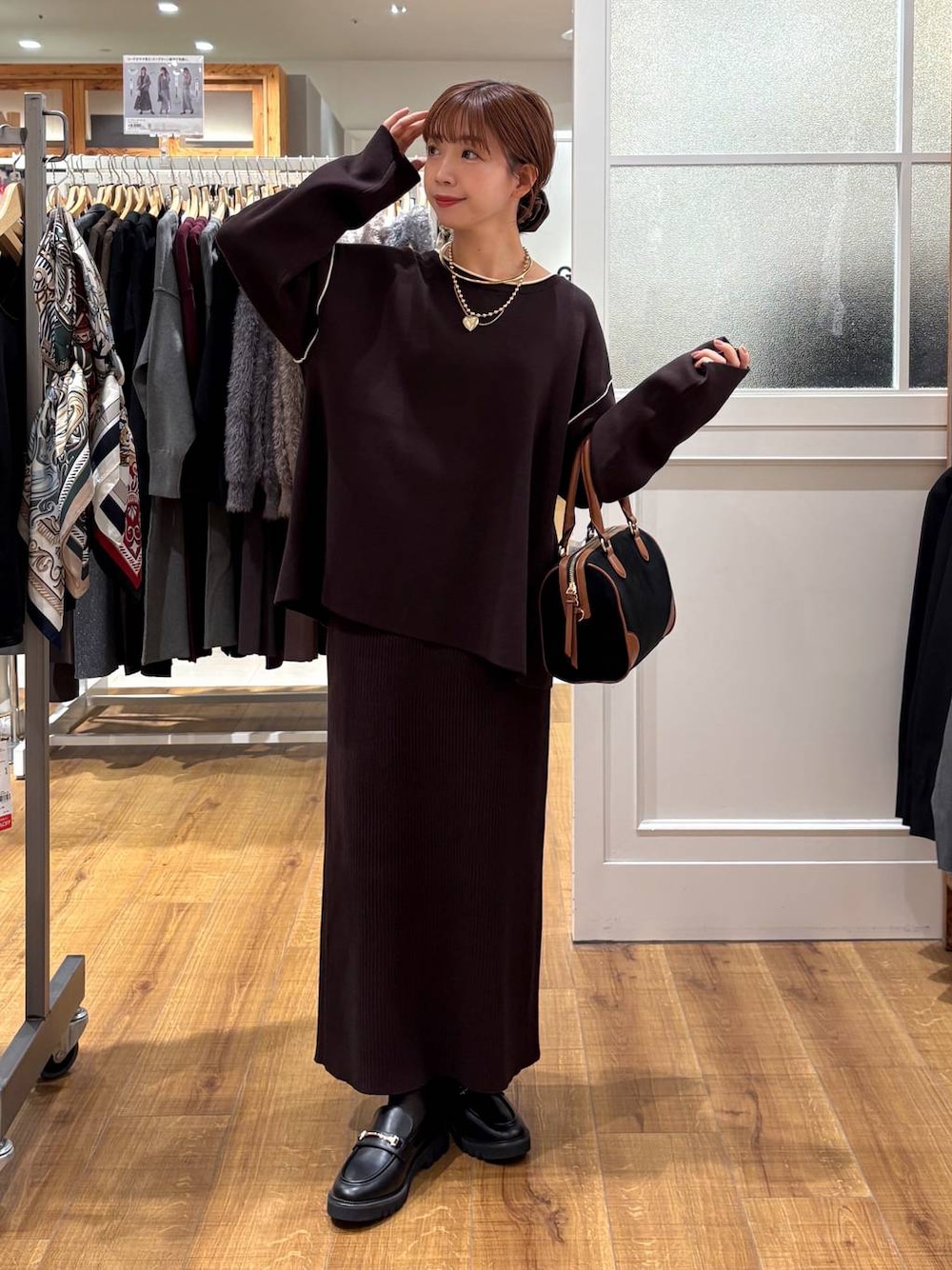 ご覧いただきありがとうございます🤍 セットアップコーデ♡ 気持ちいい肌触りのニットセットアップ🧶 お洗濯できて、毛玉になりづらい♩ トップスはゆとりがあって、スカートはIラインで すっきり細見えするシルエットです🫶🏼 配色ラインが可愛い、着回し抜群アイテム🤎 少しでも参考になれば嬉しいです、♡ Instagramも更新中🤍 ありちゃんのページはこちら🔗 \ 大和店の愉快な仲間たち🏠 / 153cm カラーコーデが得意なお洒落ママ🍒 さん♡ 169cm ユニセックスコーデが得意な韓国系美男👦🏻 ちゃん♡