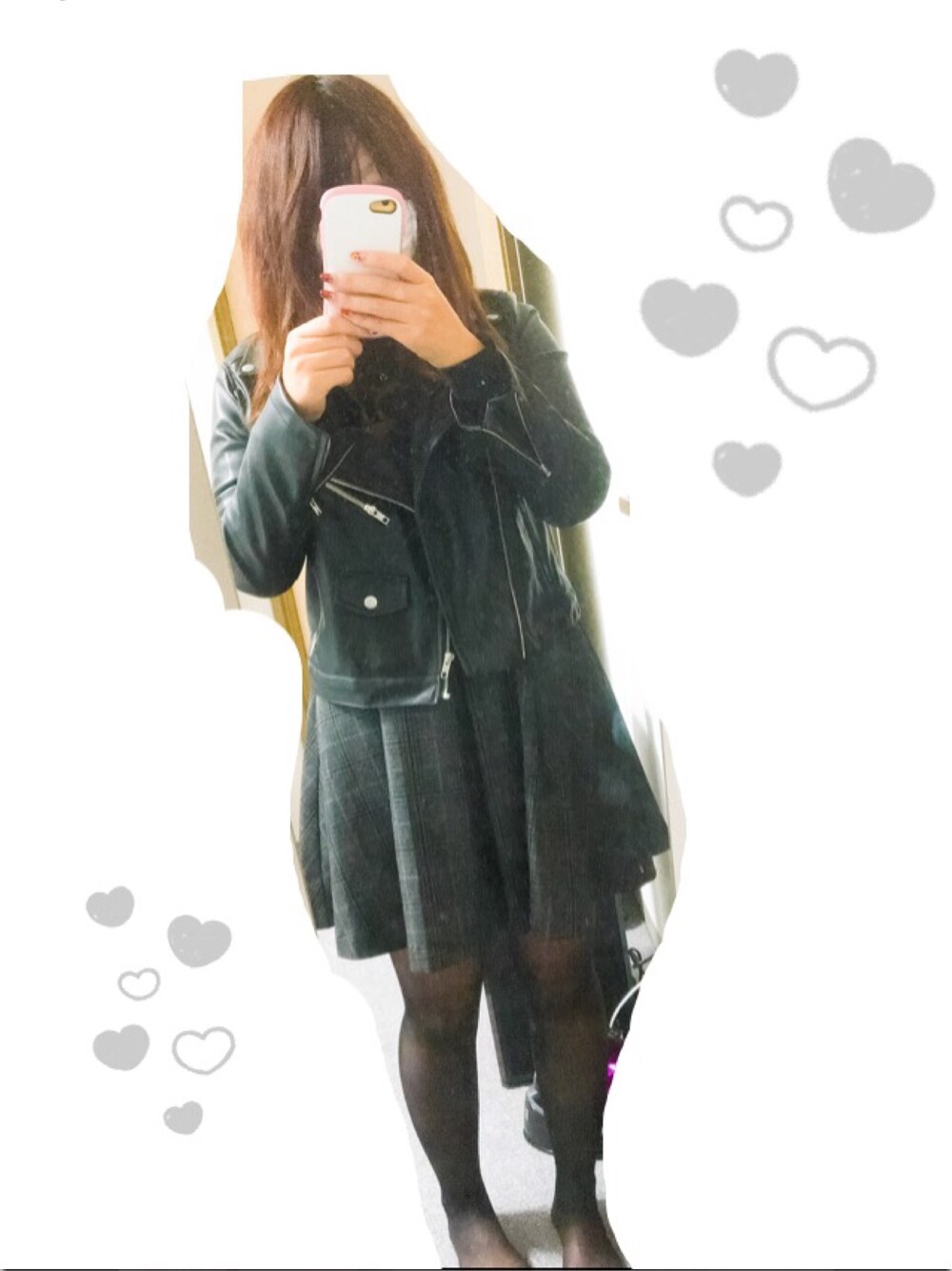 久々に! グレーのチェックのワンピに ライダースで甘辛っぽく。 これからネイルしに行ってきます🙌