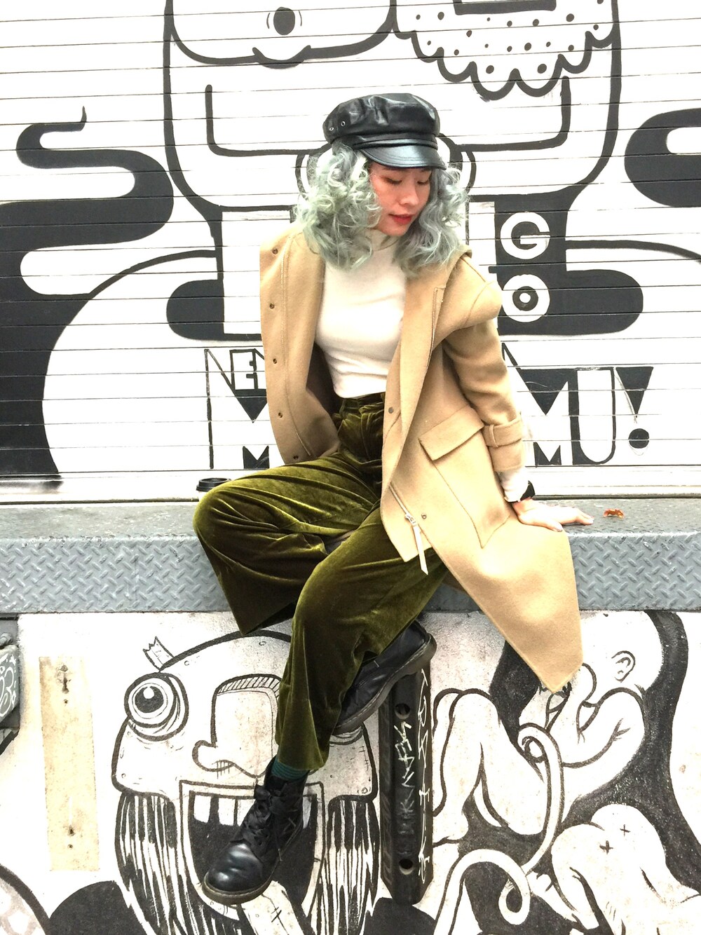ホワイト系のニット/セーターを着用したレディースの秋コーディネートの1枚目の写真