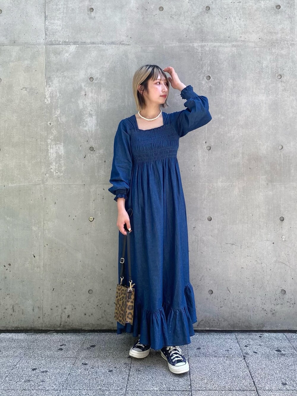 arisa okita(CIAOPANIC)のワンピース「シャーリングデニムワンピース」を使ったコーディネート