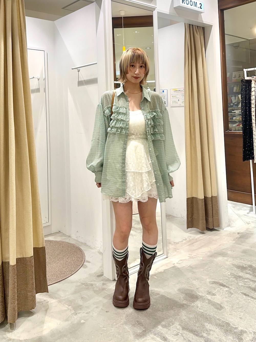 arisa okita(CIAOPANIC)のシャツ/ブラウス「フリルドッキングオーバーシャツ/シアー」を使ったコーディネート