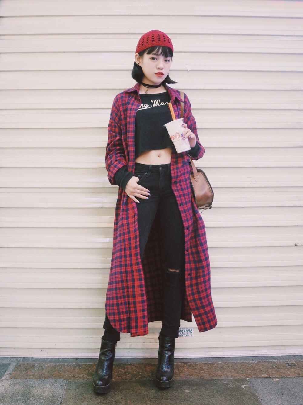 ブラック系のデニムパンツを着用したレディースの冬コーディネートの1枚目の写真