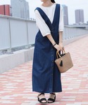 見ていただきありがとうございます♪ 今日は花柄のトップスです。 ロングのサロペットスカートは子供っぽくならないので、どんな服にも合わせやすい🌸 靴下は見えづらいですが、お色はイエローです。