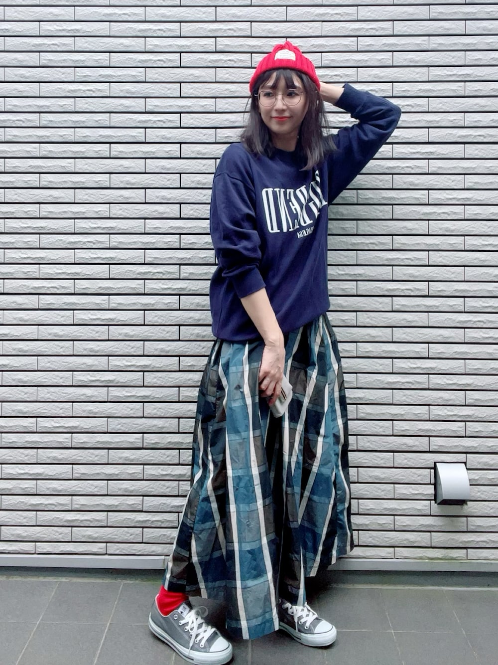 ariminakoのスカート「チェック柄ボリュームフレアスカート」を使ったコーディネート