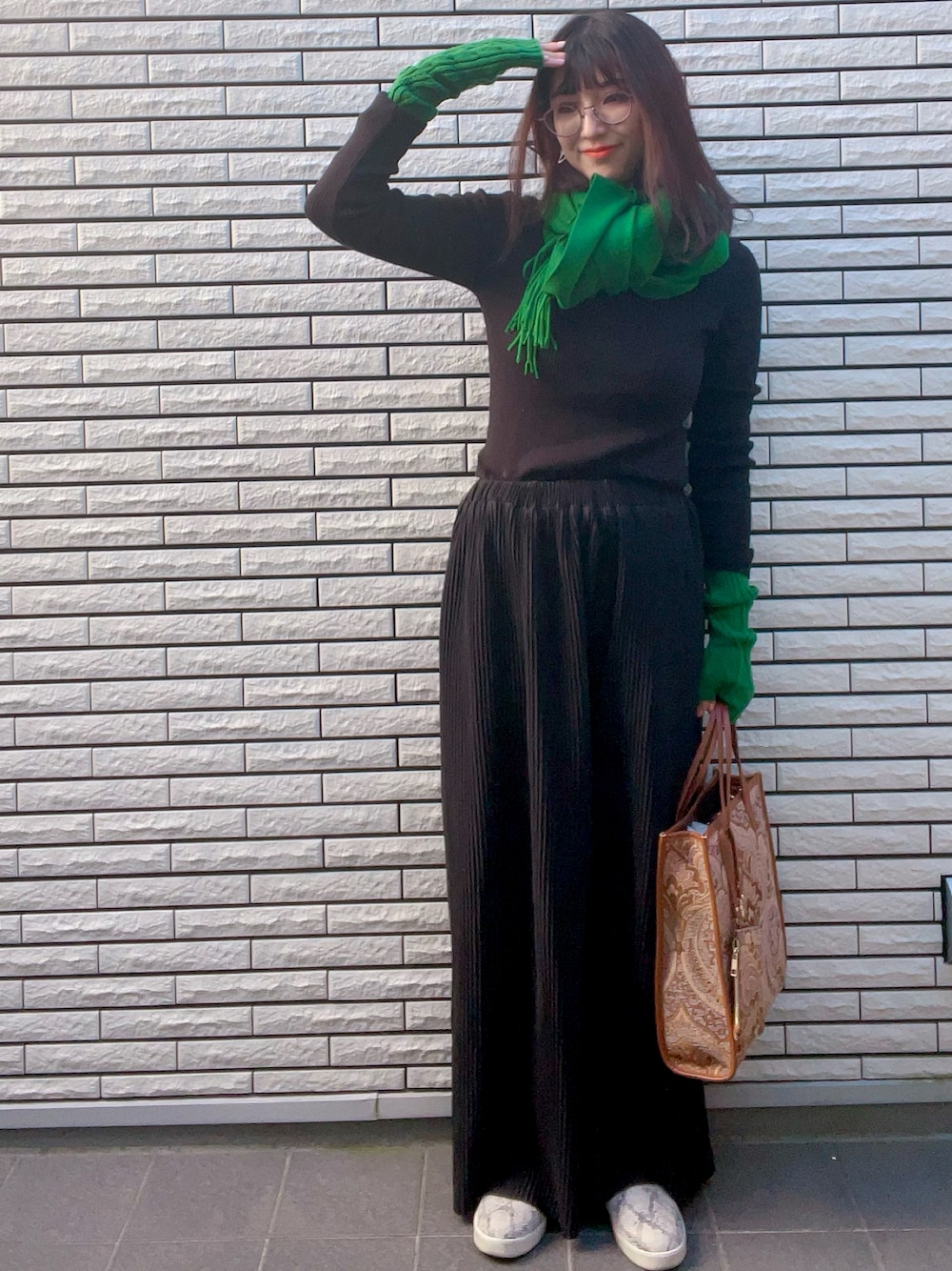 数ある中から私を見つけてくださって さらにポチッと見ていただきありがとうございます♪ マフラー、ストールのコーディネートの幅が広がる季節になりました。 グリーンはBLACKとの相性◎です。 アームウォーマーとマフラーをグリーンでまとめてみました。 何気にイヤーカフもグリーンを 取り入れてます🌸 ちょっと目を惹くコーデになるんじゃないかな。