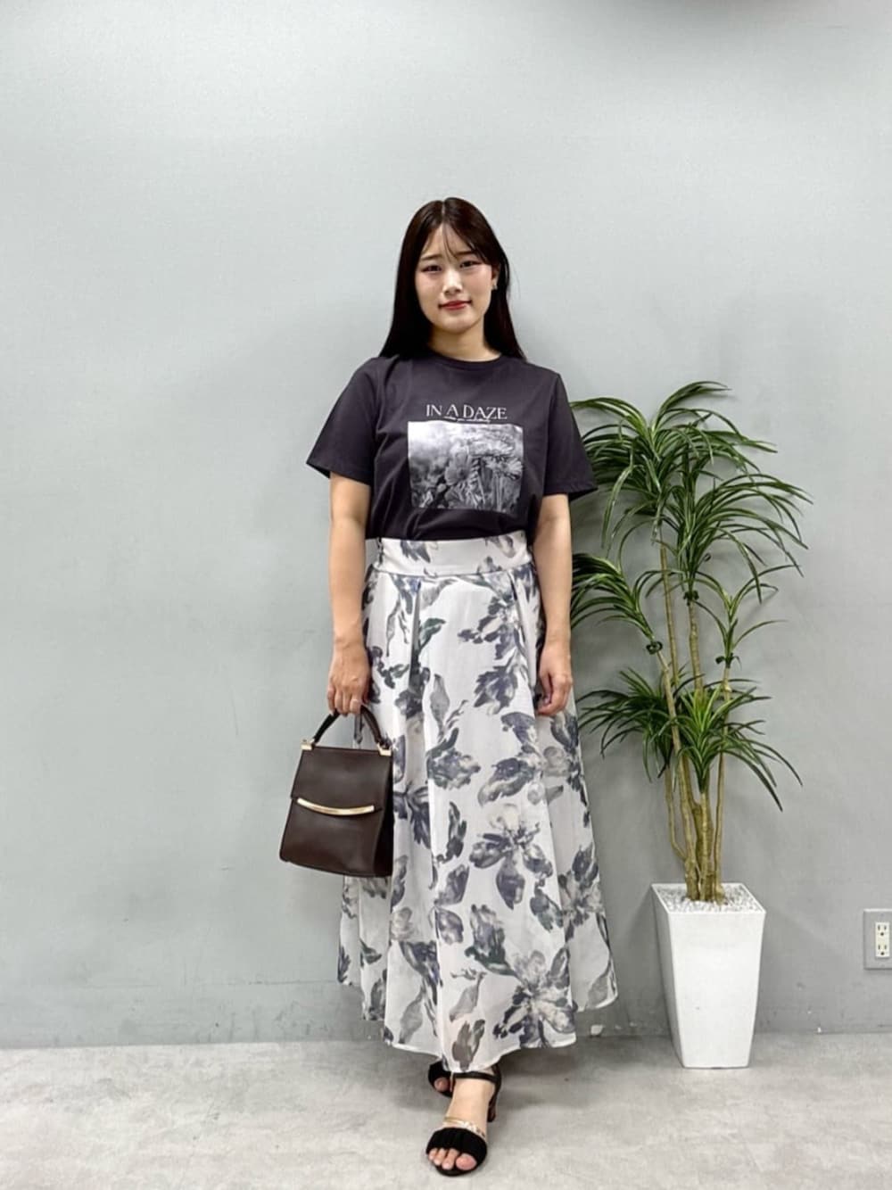 airi(natural couture)のスカート「大花プリントメッシュスカート」を使ったコーディネート