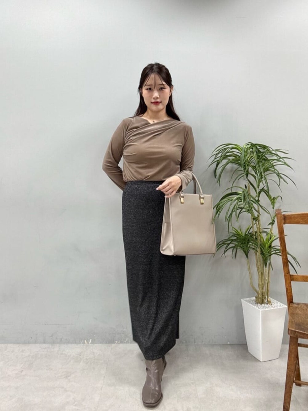 airi(natural couture)のスカート「ラメリブタイトスカート」を使ったコーディネート