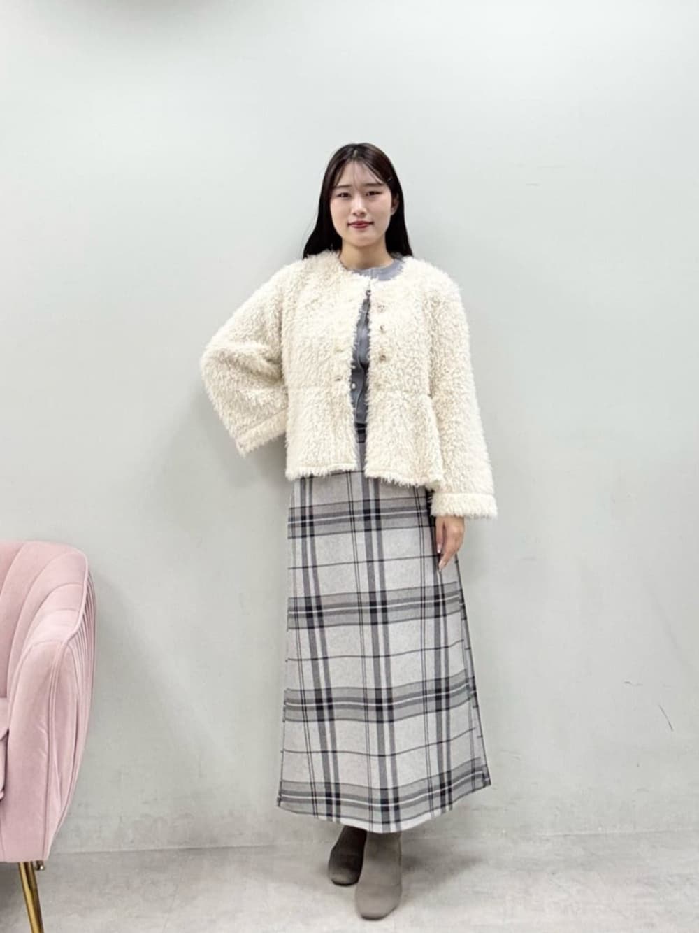 airi(natural couture)のスカート「チェック柄ペンシルスカート」を使ったコーディネート