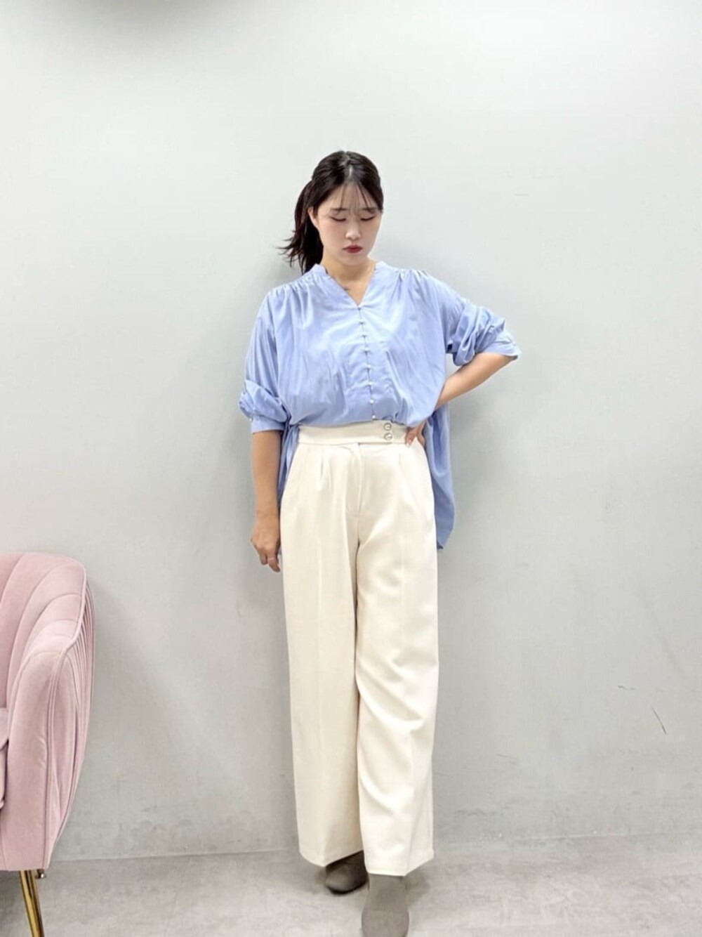 airi(natural couture)のその他パンツ「【WEB限定】金釦タックワイドパンツ」を使ったコーディネート