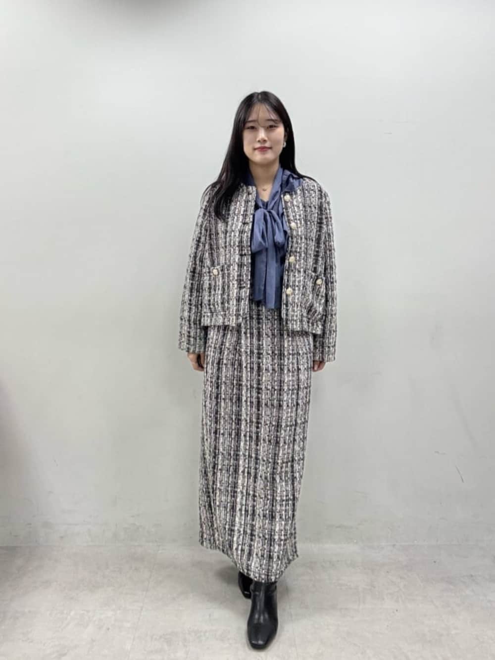 airi(natural couture)のスカート「MIXツイードハイウエストタイトスカート」を使ったコーディネート