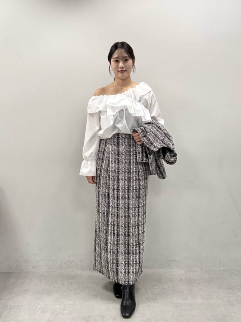 airi(natural couture)のスカート「MIXツイードハイウエストタイトスカート」を使ったコーディネート