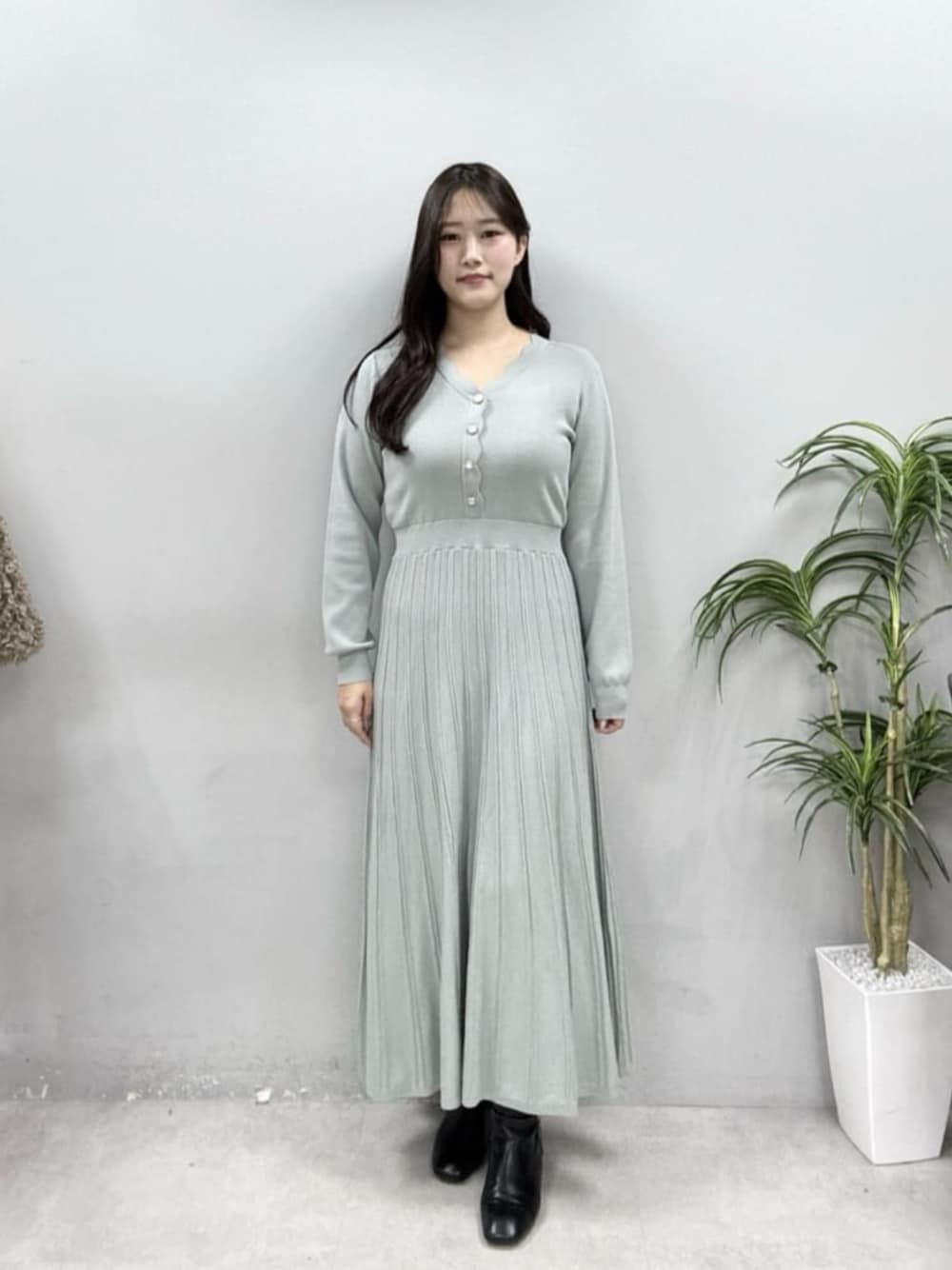 airi(natural couture)のワンピース「スカラッププリーツニットワンピース」を使ったコーディネート