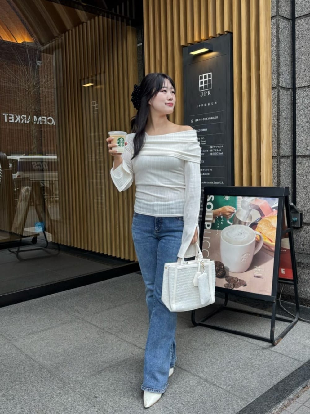 このページを下までスクロールして ゲットしてくださると嬉しいです! 【オフショルカットソー】 オフショルよく着ているのでこんなもんかなくらいで特に着づらさはなかったです アシメデザインなので両方の肩が見えるよりかは露出は控えめになります 骨ストさん得意なアシメデザインで視線を誘導できます サイズ感ピタッとしていますが ランダムテレコなので肉感拾ってもそこまで嫌ではなかったです スカートでもパンツでも合わせやすく インでもアウトスタイルでも相性良いので使いやすそうです 柄物のスカートなども合います♪ ※デニム、ヘアクリップは私物です インスタもみてね♡ @a___iri617 ㅣ161cmㅣ骨格ストレートㅣソフトエレガント