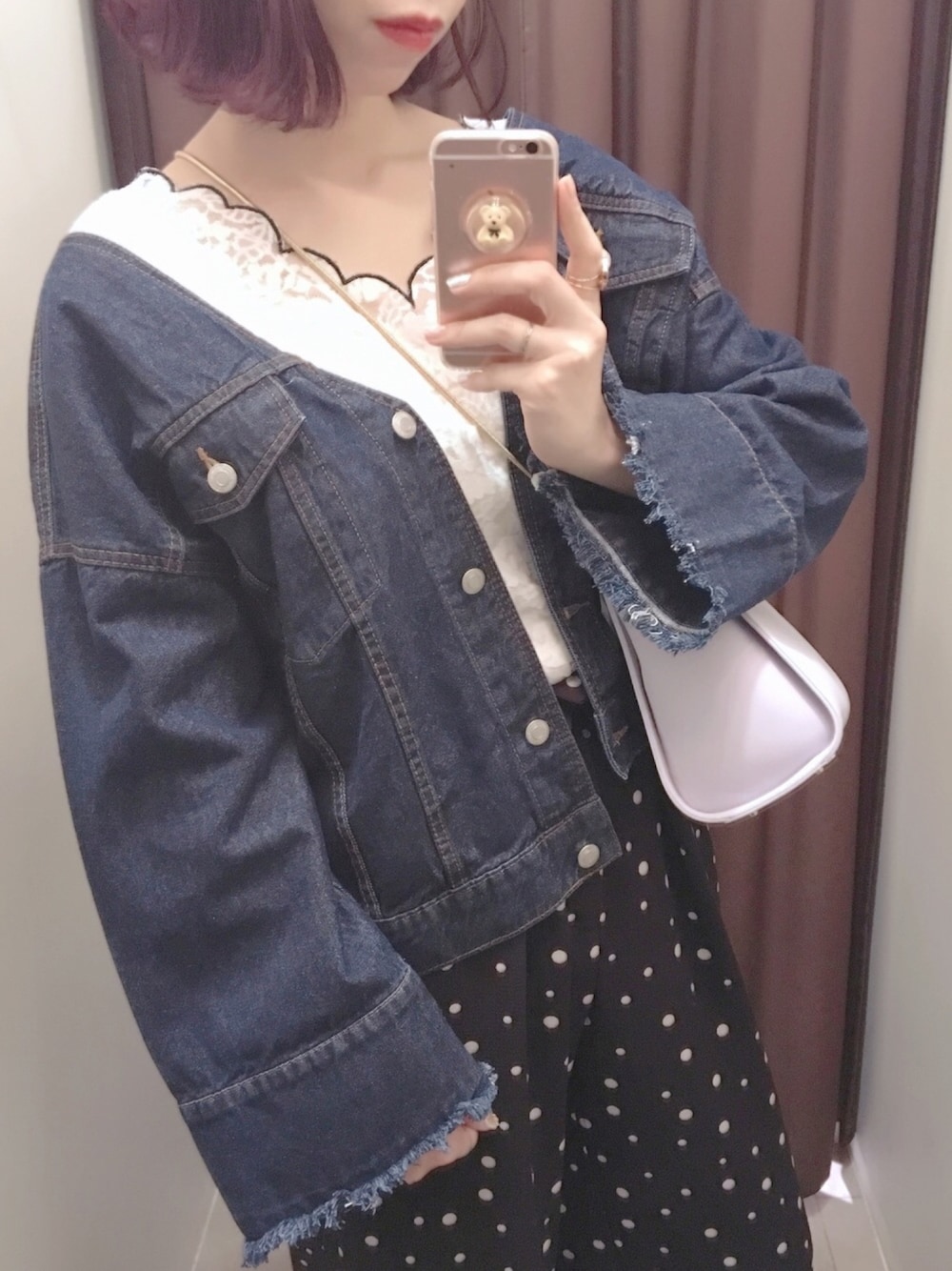 前も後ろもVネックのGジャン😎 ワイドパンツ合わせがすき👏🏻 袖は折り返してもかわいい🙊💯